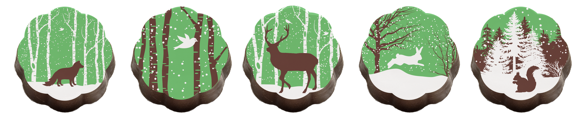 Our Woodland Wonderland Chocolate Covered Caramels are a perfect treat for nature lovers, a unique addition to your holiday spread, or a delightful gift that captures the serene beauty and charm of a winter forest in every delectable bite.